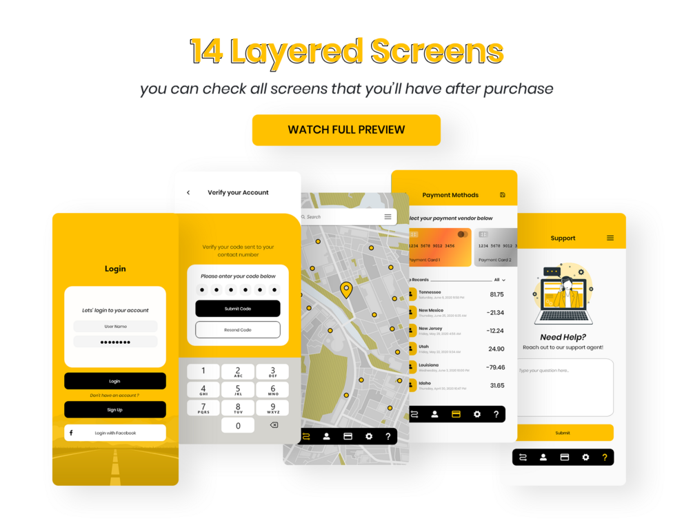 Booxi Booking for Taxi Mobile Application - UI Kit is designed with modern design trends. Small or large scale, suitable for all businesses or startup that provide taxi driving services for drivers and customers. Modifying the template is quite simple. We continue to add new things to make our design more beautiful and strong every day. You will be free to use all our updates.